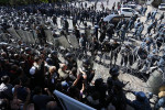 Ոստիկանները քարշակով հեռացնում են փողոցը փակած մեքենաները, վարորդներին բերման ենթարկում