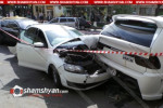Երևանում բախվել են ռուսական համարանիշներով Skoda-ն, վրացական համարանիշներով BMW X5-ն ու հայկական համարանիշներով Toyota Vitz-ը, ЗИЛ 130-ը և BMW-ն. ՖՈՏՈՌԵՊՈՐՏԱԺ