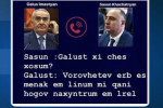 Ինչու՞ են զինվորները շաբաթը մեկ լողանում․ ՊՆ փոխնախարարի արձագանքը Հայկ Սարգսյանի մեղադրանքներին (video) Անդրանիկ Քոչարյանը Փաշինյանի դեմ է դուրս եկել․ Հայկ Սարգսյանը փակագծեր է բացում (video) Լարված իրավիճակ․ Հայկ Սարգսյանը մեղադրեց Անդրանիկ Քոչարյանին (video) #ՈՒՂԻՂ․ Շտապ. Ռուսաստանը փակո՞ւմ է Հայաստանի հետ օդային տարածքը. Նաիրա Զոհրաբյան (video) Փողով բանակից ազատվելու նախագիծը չպիտի մտնի ԱԺ. Գեղամ Մանուկյան (video) Ավտովթար՝ Երևանում. Հերացի փողոցում բախվել են «Chevrolet»-ն ու «Opel Zafira»-ն. կա 5 վիրավոր Պետական անվտանգությունը կառուցվում է ոչ միայն արտաքին դիվանագիտական կապերով, այլ նաև տնտեսական Մասիսի 3-րդ դպրոցի հետնամասում 3 անչափահասներ ձեռքերով և ոտքերով հարվածներ են հասցրել 13-ամյա տղային Տեղումները կշարունակվեն, ինչ ջերմաստիճան է սպասվում Ադրբեջանի թիրախում Ստեփանակերտի մայր եկեղեցին է. monumentwatch Ու՞մ թշնամու հետ ես ուզում գնալ․․․ Պուտինը Հայաստանին կոնկրետ մի բան ասաց․ Գագիկ Ծառուկյան (video) Ի՞նչ եք պայմանավորվել Պապիկյանի հետ․ թեժ խոսակցություն Գեղամ Մանուկյանի և Հայկ Սարգսյանի միջև (video) «Սա ինչ-որ ծայրաստիճան շիզոֆրենիա է՝ բարձրացված պետական քաղաքականության աստիճանի. Մեղա քեզ Տեր Աստված…». Աբովյան Իրանը կտա վճռական ու համապարփակ պատասխան. Իրանի ԱԳՆ #ՀԻՄԱ․ Ռուսաստանում Նիկոլին «ծեծել են»․ Պուտինն ասել է՝ չե՛ս խաբելու․ Տիգրան Չոբանյան (video) Վիճաբանություն և ծեծկռտուք՝ Նորապատում. մոտ 15 հոգով ձեռքերով և ոտքերով հարվածներ են հասցրել 43-ամյա տղամարդուն Կոտայքում «Nissan»-ը բախվել է քարերին ու հողաթմբերին և հայտնվել բնակչի տան տարածքում. կա վիրավոր Իրանի հարցով միջնորդները վերջին ջանքերն են գործադրում 45-օրյա հրադադար հաստատելու առաջարկի շուրջ Սպանվել է ԻՀՊԿ հետախուզական ծառայության ղեկավարը Ուկրաինական հարվածների հետևանքով Լուգանսկում 41 հանքագործ արգելափակված է գետնի տակ «Փաշինյանը էդ տիրադավ հոգևորականներին գիտե՞ք՝ ինչ է արել»․ վանաձորցիների պատասխանը (video) Պարտավորված եմ զգում անել հնարավոր ամեն ինչ, որպեսզի մեր ժողովուրդը լավ ապրի․ Ծառուկյան Ովքեր իրենց ձայնը կտան իշխանությանը, իրենց ուղիղ մասնակցությամբ նոր անեծք կբերեն մեր ազգի գլխին Ամենայն Հայոց Կաթողիկոսը իր պատգամով նորից «պատռեց» այս իշխանության խայտառակ դեմքը (video) Անհապաղ վերացնել Դավիթ Մինասյանի խափանման միջոց կալանավորումը․ ՀԿ-ները հայտարարություն են տարածել
