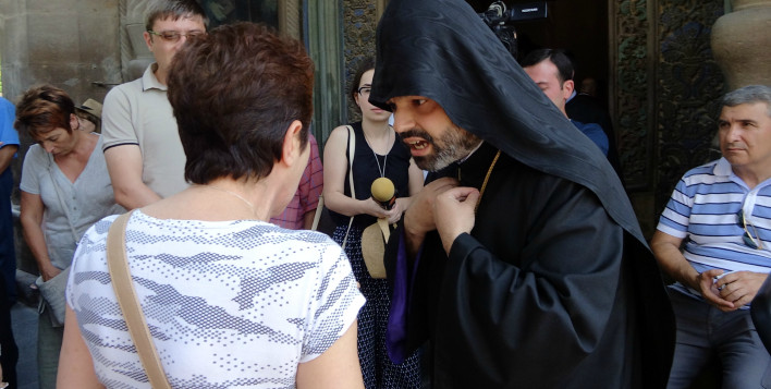 Միջադեպ Մայր Աթոռում.դրանց նման ծախու շներն ու աղանդավորներն իրավունք չունեն մոտենալ Սուրբ Գեղարդին (video)