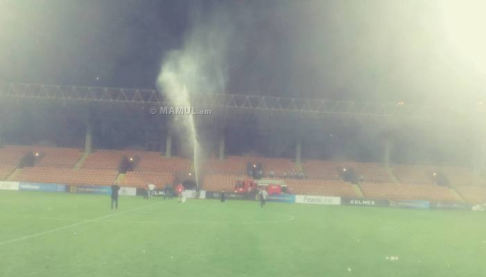 Քիչ առաջ «Հանրապետական» մարզադաշտում ընթացող լեգենդների խաղի ավարտին տեղի ունեցած հրավառության պատճառով հրդեհվել է մարզադաշտի կտուրը: