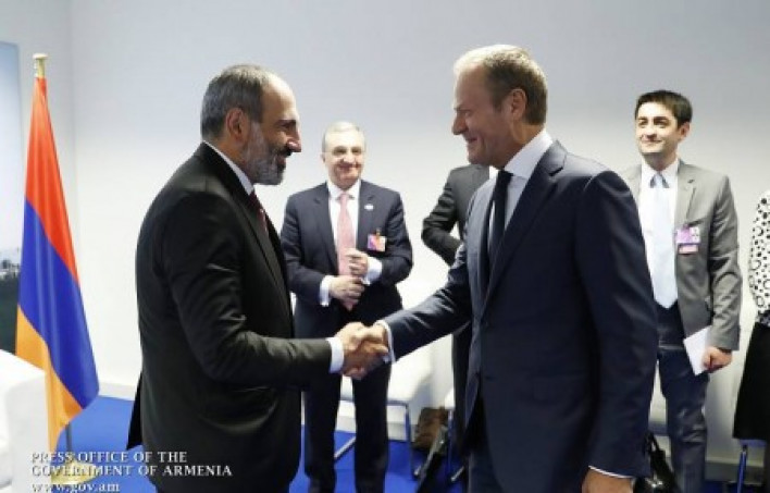 Վարչապետ Նիկոլ Փաշինյանը ՆԱՏՕ-ի կենտրոնակայանում հանդիպում է ունեցել Եվրոպական խորհրդի նախագահ Դոնալդ Տուսկի հետ: Այս մասին հայտնում են կառավարության մամուլի ծառայութունից։ Վարչապետը նշել է, որ ՀՀ նոր կառավարության նպատակն է ամրապնդել ժողովրդավարության հաղթանակը, ապահովել երկրում օրենքի գերակայությունը, դատական համակարգի անկախությունը, և որ այս ճանապարհին Հայաստանը կարևորում է ԵՄ աջակցությունը և պատրաստ է վերջինիս հետ սերտ համագործակցության: Դոնալդ Տուսկը կարևորել է ՀՀ-ԵՄ համագործակցության ծավալների ընդլայնումը և ողջունել Հայաստանում վերջին շրջանում տեղի ունեցած համազգային միավորումը: «Ես միշտ եղել եմ Հայաստանի բարեկամը: Այն, ինչ տեղի ունեցավ Հայաստանում՝ յուրահատուկ էր և, ասեմ Ձեզ, շատ եվրոպական: Ձեր օրինակը շատ խոստումնալից էր և կարող եք ակնկալել Եվրոպական միության աջակցությունը բարեփոխումները կյանքի կոչելու ճանապարհին»,- ասել է Դոնալդ Տուսկը: Հանդիպման ընթացքում զրուցակիցները մտքեր են փոխանակել ՀՀ-ԵՄ հարաբերությունների հետագա զարգացմանն ուղղված տարբեր հարցերի շուրջ: Անդրադառնալով Լեռնային Ղարաբաղի հիմնախնդրին՝ ՀՀ վարչապետն ընդգծել է, որ Հայաստանը հավատարիմ է Մինսկի խմբի համանախագահողների հովանու ներքո իրականացվող բանակցային գործընթացին և ընդգծել, որ հակամարտությունը ռազմական տարբերակով լուծելու յուրաքանչյուր փորձ կլինի ոտնձգություն տարածաշրջանային անվտանգության, ժողովրդավարության և մարդու իրավունքների դեմ: «Հայաստանը, ինչպես ցանկացած այլ ժողովրդավարական երկիր, ձգտում է խաղաղության և անում է ամենը տարածաշրջանային անվտանգությունն ու կայունությունն ապահովելու համար»,- ասել է Նիկոլ Փաշինյանը: