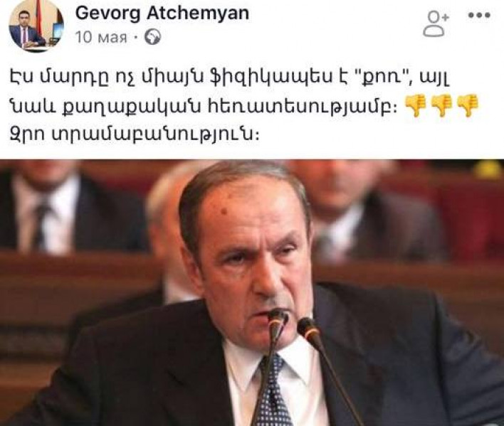 Վերջին օրերին համացանցում ամենաշատ քննարկվող քաղաքական գործիչներից մեկը՝ ՀՀ վարչապետի աշխատակազմի գործերի կառավարիչ Գևորգ Աճեմյանը, Հայաստանում տեղի ունեցած իշխանափոխությունից հետո զերծ չի մնացել ՀՀ առաջին նախագահ Լևոն Տեր-Պետրոսյանին վիրավորելուց: