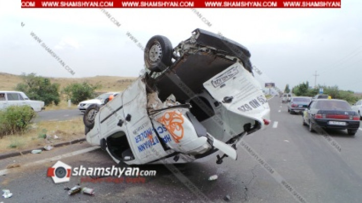 Խոշոր ավտովթար Կոտայքի մարզում. բախվել են Nissan-ն ու Fiat-ը. Fiat-ը գլխիվայր շրջվել է, Nissan-ն էլ՝ կողաշրջվել. կա վիրավոր