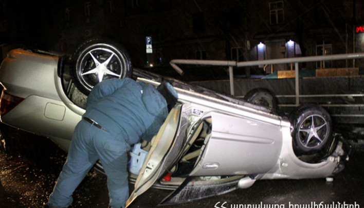 Երևան-Գյումրի ճանապարհին «Մերսեդես»-ը բախվել է պատնեշին ու շրջվել. 20-ամյա ուղևորը տեղում մահացել է