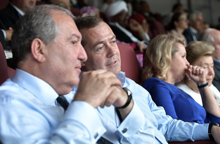 Նախագահ Արմեն Սարգսյանը Մոսկվայի «Լուժնիկի» մարզադաշտում դիտել է ֆուտբոլի աշխարհի առաջնության փակման արարողությունը, ապա հետեւել է եզրափակիչ՝ Ֆրանսիա-Խորվաթիա խաղին: