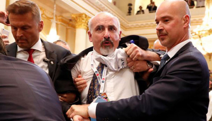 Լրագրողին դահլիճից դուրս են բերել, սակայն նա վերադարձել է, որից հետո ծեծկռտուք է սկսվել: Ապա նրան կրկին հեռացրել են անվտանգության ծառայության աշխատակիցները: