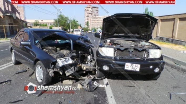 Խոշոր ավտովթար ՊՆ-ի դիմաց բախվել են Mercedes-ն ու Mitsubishi Pajero IO-ն. կան վիրավորներ. ՖՈՏՈՌԵՊՈՐՏԱԺ, ՏԵՍԱՆՅՈՒԹ