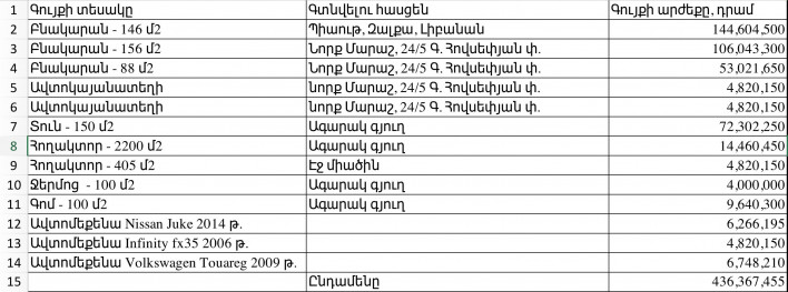 ՀՀ Փոխվարչապետի գրասենյակի ղեկավար Վարագ Սիսեռյանը Ֆեյսբուքում գրել է. «Հանրային ծառայության մասին» ՀՀ գործող օրենքի համաձայն՝ ՀՀ փոխվարչապետի գրասենյակի ղեկավարի համար գույքի, եկամուտների և շահերի հայտարարագիր ներկայացնելու պահանջ սահմանող դրույթը ուժի մեջ է մտնում 2019 թվականի հունվարի մեկին և պարտավորություն սահմանում մինչև 2019 թվականի մարտի 31-ը հայտարարագիր ներկայացնել Կոռուպցիայի կանխարգելման հանձնաժողով: Հաշվի առնելով, որ քանի դեռ օրենքի այս դրույթը ուժի մեջ չի մտել, չեմ կարող օրենքով սահմանված կարգով հայտարարագիր ներկայացնել, միաժամանակ հավատարիմ մնալով հաշվետու և թափանցիկ կառավարման որդեգրված քաղաքականությանը, բացառելով հետագայում հնարավոր շահարկումները՝ ստորև ներկայացնում եմ պաշտոնը ստանձնելու պահին գույքիս և եկամուտներիս կազմը։
