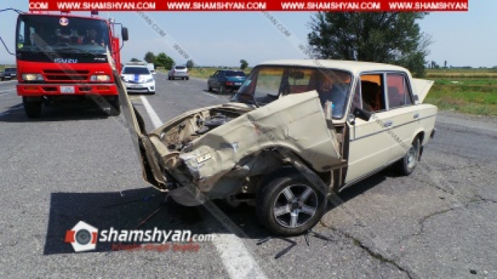 Այսօր՝ օգոստոսի 21-ին, ավտովթար է տեղի ունեցել Արմավիրի մարզում: Ժամը 13:30-ի սահմաններում Երևան-Արմավիր ավտոճանապարհի 25-րդ կմ հատվածում բախվել են BYD մակնիշի 34 VF 030 համարանիշի և ВАЗ 2106 մակնիշի 34 PZ 955 համարանիշի ավտոմեքենաները: Ինչպես դեպքի վայրից հայտնում է ֆոտոլրագրող Գագիկ Շամշյանը, բախման հետևանքով BYD-ը առաջ է ընթացել դեպի հանդիպակաց երթևեկելի գոտի և հայտնվել ձորակում: Վթարի հետևանքով 1 հոգի մարմնական վնասվածքներով տեղափոխվել է Վաղարշապատի բժշկական կենտրոն: Օպերատիվորեն դեպքի վայր են ժամանել Արտակարգ իրավիճակների նախարարության փրկարար ծառայության Վաղարշապատի թիվ 29 հրշեջ-փրկարարական ջոկատը՝ 1 մարտական հաշվարկով՝ ջոկատի հրամանատար Վահան Մկրտչյանի գլխավորությամբ: Ժամանել են նաև ճանապարհային ոստիկանության 2-րդ սպայական գումարտակի 1-ին վաշտի 1-ին դասակի ծառայողները՝ դասակի հրամանատար Կարեն Աբելյանի գլխավորությամբ: Վթարի մասին ՃՈ 1-77 օպերատիվ կառավարման կենտրոնի պատասխանատու հերթապահ Յուրա Հովհաննիսյանը տեղեկությունը փոխանցել է ոստիկանության Վաղարշապատի բաժին, որտեղից ժամանել է օպերատիվ խումբը՝ բաժնի պետ Գևորգ Հակոբյանի գլխավորությամբ: Փրկարարները հոսանքազրկել են ավտոմեքենաները, փակել գազաբալոններն ու սահմանազատել տարածքը: Փաստի առթիվ ՃՈ 2-րդ սպայական գումարտակի 1-ին վաշտի հետաքննիչ Նարեկ Պետրոսյանի կողմից նյութեր են նախապատրաստվում: Ոստիկանությունը պարզում է վարորդների և վիրավորի ինքնությունը: Ծանուցում. Ենթադրյալ հանցանքի մեջ կասկածվողը կամ մեղադրվողը համարվում է անմեղ, քանի դեռ նրա մեղավորությունն ապացուցված չէ ՀՀ քրեական դատավարության օրենսգրքով սահմանված կարգով` դատարանի` օրինական ուժի մեջ մտած դատավճռով: