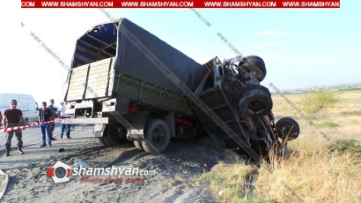 Խոշոր ավտովթար Արարատի մարզում. բախվել են ձմերուկով և ավազով բարձված ЗИЛ-երը. մեկը կողաշրջվել է, մյուսն էլ հայտնվել է նրա վրա