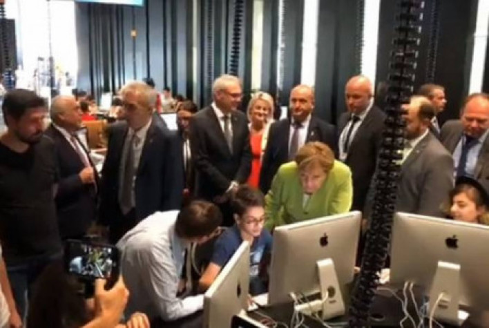 Գերմանիայի կանցլեր Անգելա Մերկելը Երևանում այցելեց «Թումո» ստեղծարար տեխնոլոգիաների կենտրոն: Գերմանիայի կանցլերին ուղեկցում էր Հայաստանի կրթության և գիտության նախարար Անգելա Մերկելը: