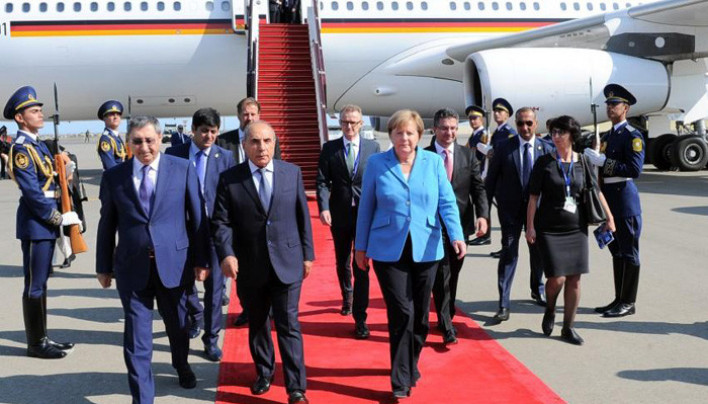 Գերմանիայի կանցլեր Անգելա Մերկելը ժամանել է Բաքու: Օդանավակայանում նրան դիմավորել են այդ երկրի առաջին փոխվարչապետն ու ԱԳ փոխնախարարը: Քիչ անց նախատեսված է Մերկելի հանդիպումը Իլհամ Ալիևի հետ: