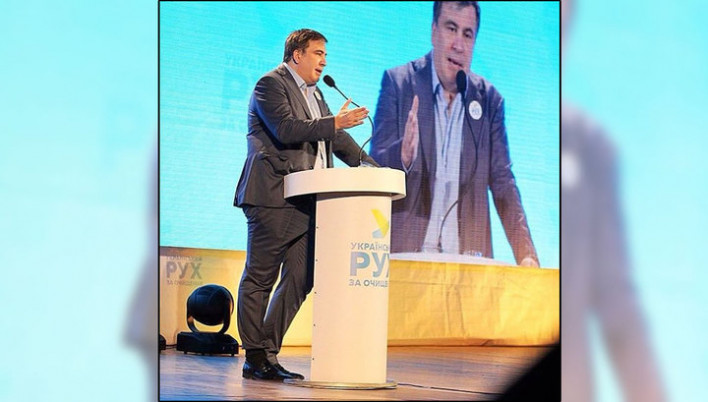 Օդեսայի նահանգապետ Միխեիլ Սաակաշվիլին Դնեպրոպետրովսկում Հակակոռուպցիոն ֆորումին ներկայացել է տաբատի աջ փողքը կիսագուլպայի մեջ դրած: