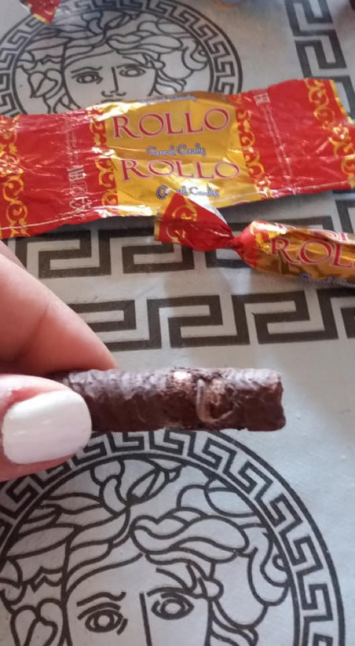 Facebook-ի օգտատերերից մեկը տեսանյութ և լուսանկար է հրապարակել որտեղ «Գրանդ քենդի» ֆիրմայի «ROLLO» շոկոլադի միջից որդ է դուրս գալիս: