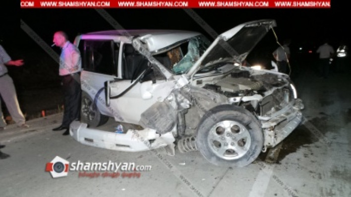 Սեպտեմբերի 13-ին, խոշոր ավտոթվար է տեղի ունեցել Արագածոտնի մարզում: Ժամը 21:25-ի սահմաններում Երևան-Գյումրի ավտոճանապարհի 52-րդ կ հատվածում բախվել են Mitsubishi Pajero io մակնիշի 22 ՏՕ 141 համարանիշի և КамАЗ մակնիշի 43 ՕՍ 659 համարանիշի ավտոմեքենաները: Ինչպես դեպքի վայից հայտնում է ֆոտոլրագրող Գագիկ Շամշյանը, վթարի հետևանքով 5 հոգի մարմնական վնասվածքներով տեղափոխվել են Թալինի բժշկական կենտրոն: Դեպքի վայրում հավաքվածներն ասում էին, որ բոլո վիրավորերին առաջինը օգնություն է ցուցաբերել այդ պահին Գյումրիից Երևան վերադարձող Արտակարգ իրավիճակների նախարարության ծառայության կազմակերպման վարչության հատուկ պարեկային պահակային ջոկատի հրամանատարի տեղակալ, փրկարար ծառայության կապիտան Հովհաննես Խաչոյանը, այնուհետև օպերատիվորեն ժամանել են Թալինի հրշեջ-փրկարարական ջոկատի 1-ին խմբի հերթափոխի հրշեջ-փրկարարները: Դեպքի վայր են ժամանել ճանապարհային ոստիկանության 2-րդ սպայական գումարտակի 2-րդ վաշտի 1-ին դասակի ծառայողները՝ վաշտի հրամանատար Վաչե Մալաքյանի, դասակի հրամանատար Հրանտ Գալստյանի գլխավորությամբ: Վթարի մասին ՃՈ 1-77 օպերատիվ կառավարման կենտրոնի պատասխանատու հերթապահ Մինաս Մինասյանը տեղեկությունը փոխանցել է ոստիկանության Թալինի բաժին, որտեղից ժամանել է օպերատիվ խումբը՝ բաժնի պետ Սեյրան Մարտիրոսյանի գլխավորությամբ:: Փաստի առթիվ ՃՈ 2-րդ սպայական գումարտակի 2-րդ վաշտի հետաքննիչ Վահագն Էլոյանի կողմից նյութեր են նախապատրաստվում: Վարորդները տեղում սթափության փորձաքննության են ենթարկվել, պարզվել է, որ նրանք եղել են սթափ; Ոստիկանությունը պարզում է վարորդների, վիրավորների ինքնությունը: Ծանուցում. Ենթադրյալ հանցանքի մեջ կասկածվողը կամ մեղադրվողը համարվում է անմեղ, քանի դեռ նրա մեղավորությունն ապացուցված չէ ՀՀ քրեական դատավարության օրենսգրքով սահմանված կարգով` դատարանի` օրինական ուժի մեջ մտած դատավճռով: Լուսանկարները՝ Գագիկ Շամշյանի