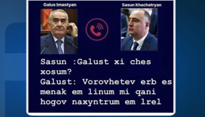 <<Լը մոնդը>> ԱԱԾ-ՀՔԾ պետերի ձայնագրությունը հրապարակում է այն օրը, երբ Փարիզում Փաշինյանը Մակրոնի հետ հանդիպման է․․․ -Հ․Գ․ -Բացատրե՞մ, թե ինքնին հասկանալի է նշանների լեզուն․ -Ընդ որում, չէի ուզում ասել, բայց եւ Եվրոնյուզի <<սխալը>> ԱԱԾ պետի դերում Գալուստ Սահակյանին <<շփոթելը>>․ -Պարոնայք, նունպես պատահական չէր․ -Նրանք ցանկացել էի ասել․ -Որ հայաստանյան անվտանգության համակարգը․․․ -Գալուստ Գրիգորիչի նման վիճակում է /մեծ քաղաքականության մեջ մանրուքներ չկան, նրանք հաստատապես շատ լավ գիտեն՝ ով է մեր սիրեի Գրիգորիչը․․․/ Հ․Գ․ -Ղարաբաղ, միայն՝ Ղարաբաղ․ -Սա է բազմաֆիգուր միջազգային կոնֆիգուրացիաների եւ զոնդաժի միակ մեսիջը․․․ #Շարունակեք_ոչխար_պահել Կարմեն Դավթյանի էջից