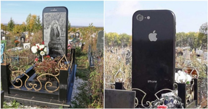 Ուֆայի գերեզմանատներից մեկում տեղադրվել է մարդու հասակի բարձրությամբ հսկայական iPhone 6-ի տեսքով գրանիտե հուշաքար: Այս մասին հաղորդում է Ufa1-ը: