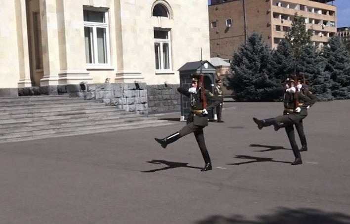 Բաղրամյան 26-ի դռների առջեւ ծառայություն է իրականցնում Պատվո պահակախումբը/տեսանյութ/