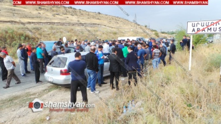 Այսօր՝ հոկտեմբերի 2-ին, արտակարգ իրավիճակ է ստեղծվել Կոտայքի մարզում։ Արամուս գյուղի 1 տասնյակից ավելի բնակիչներ արդեն 2 ժամից ավելի է, փակել են Մայակովսկի գյուղից դեպի Արամուս գյուղ տանող ճանապարհը։ Ինչպես տեղից հայտնում է ֆոտոլրագրող Գագիկ Շամշյանը, գյուղացիներն իրենց այդ քայլը պատճառաբանում են՝ ասելով. «Ժողովուրդը չի սխալվում, երբ ասում է՝ եթե դանակը ոսկորին է հասնում, պետք է դիմել ամենածայրահեղ միջոցի։ Ու հիմա պահանջում ենք, որպեսզի գյուղապետ Հրայր Նիկողոսյանը հրաժարական տա։ 16 տարի է՝ մեր գյուղապետն է եղել ու հիմա պահանջում ենք, որպեսզի նա հրաժարական տա և տեղի ունենան գյուղապետի արտահերթ ընտրոթյուններ։ Եթե ինքը վստահ է իր հաղթանակի վրա, թող համաձայնվի և տեղի ունենան նոր ընտրություններ։ Ամեն անգամ մտածել ենք, որ գյուղապետը գյուղի համար մի նոր բան կանի, սակայն՝ ապարդյուն։ Մենք հաստատակամ ենք. մինչև մեր պահանջը չկատարվի, ոչ ճանապարհն ենք բացելու, ոչ էլ բողոքի ակցիաներն ենք դադարեցնելու»։ Այս պահին գյուղ են ժամանել ոստիկանության Կոտայքի բաժնի մեծ թվով ծառայողներ՝ բաժնի պետ Հովհաննես Մարտիրոսյանի գլխավորությամբ, ովքեր բանակցում են գյուղացիների և գյուղապետի հետ, որպեսզի ճանապարհը բացեն։ Կոտայքի մարզպետարանից ժամանած պաշտոնյայի կողմից առաջարկվեց ժամը 3-ին հանդիպել մարզպետարանում և քննարկել խնդիրը՝ առաջարկելով այդ ժամանակահատվածում ճանապարհը բացել։ Բողոքի ակցիայի մասնակիցները համաձայնվեցին ժամը 3-ին հանդիպում կազմակերպել մարզպետարանում, սակայն մինչ այդ ճանապարհը պետք է մնա փակ։ Գյուղապետ Հ. Նիկողոսյանն իր խոսքում հայտնեց, որ ինքը այս պահին մտադրություն չունի հրաժարական տալու, իսկ հետագայում կորոշի. «Ես վստահ եմ, որ մեծամասնություն եմ կազմում։ Հիմա ի՞նչ անեմ, ես էլ իմ կողմնակիցների՞ն հավաքեմ», ու այդ խոսքի վրա բողոքի ակցիայի մասնակիցներն ասում էին, որ. «Դու կողմնակիցներ չունես»։ Գյուղացիները նշում էին նաև. «16 տարվա գյուղապետը սելով էկավ, վստահեցինք ու ընտրեցինք ու հիմա մեր խնդիրները լսում ու արհամարհում է։ Զարմանում ենք, էդ ի՞նչ յուղոտ պաշտոն ա գյուղապետի պաշտոնը, որ մարդը տարին 2 անգամ Եվրոպայում է մեկումեջ էլ ձեռի հետ Դուբայ է մեկնում։ Օբյեկտների մասին էլ չենք ասում։ Նրա ոչ ճիշտ աշխատանքի արդյունքում ցորենի արտերը դարձել է ամայի. սաղ վերածվել է բազալտի հանքերի։ Սովետական տարիներին Արամուսը հայտնի էր իր գյուղմթերքներով, իսկ հիմա նույնիսկ Արամուսի հայտնի գազարը էն գազարը չի, որ Սովետի ժամանակ էր»։ Այս պահին բանակցությունները շարունակվում են ու ճանապարհը փակ է։ Լուսանկարները՝ Գագիկ Շամշյանի