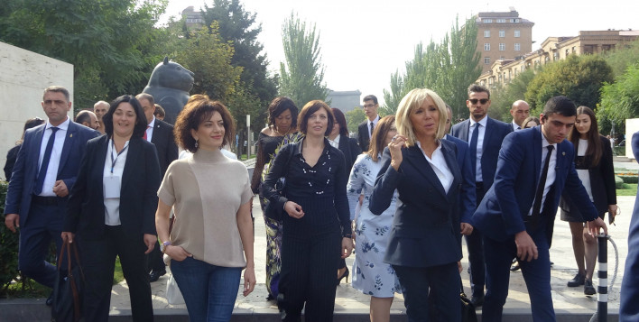 Աննա Հակոբյանը, Բրիջիթ Մակրոնն ու այլ առաջին տիկնայք զբոսնում են Կասկադում (video)