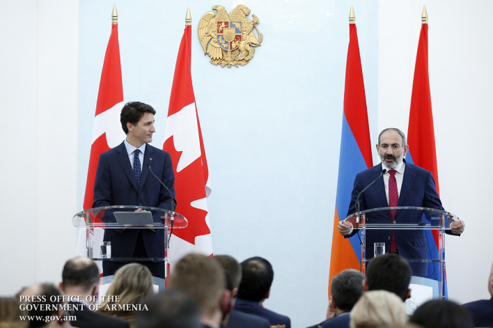 Հայաստանի Հանրապետության վարչապետ Նիկոլ Փաշինյանը և պաշտոնական այցով Հայաստանում գտնվող Կանադայի վարչապետ Ջասթին Թրյուդոն բարձր մակարդակի բանակցություններից հետո հանդիպել են զանգվածային լրատվամիջոցների ներկայացուցիչներին, հանդես եկել բանակցությունների արդյունքներն ամփոփող հայտարարություններով և պատասխանել լրագրողների հարցերին։ «Արմենպրես»-ին այս մասին տեղեկացրին ՀՀ վարչապետի աշխատակազմի տեղեկատվության և հասարակայնության հետ կապերի վարչությունից: ՀՀ վարչապետ Նիկոլ Փաշինյան – Բարև ձեզ, հարգելի գործընկերներ, ուրախ եմ ձեզ տեսնել: Տեղի ունեցավ մեր խոսակցությունը, տեղի ունեցան բանակցություններ Կանադայի վարչապետի գլխավորությամբ Հայաստանում գտնվող պատվիրակության հետ: Ես նախևառաջ ուզում եմ ասել, որ ողջունում եմ պարոն Թրյուդոյի այցը Հայաստանի Հանրապետություն: Պարոն Թրյուդոն Կանադայի առաջին վարչապետն է, որ պաշտոնական այցով այցելում է Հայաստան, և սա, ըստ էության, պատմական իրադարձություն է, և ես հույս ունեմ, որ այս պատմական իրադարձության արդյունքում մեր հարաբերություններում պատմական զարգացումներ կլինեն: Մենք քննարկեցինք մեր հարաբերություններին և միջազգային կյանքին վերաբերող հարցերի բավական լայն շրջանակ: Ընդ որում՝ այդ բանակցությունները երեկվանից էին սկսել, երբ պարոն վարչապետի հետ դեմառդեմ հանդիպում ենք ունեցել և քննարկել ենք և՛ ներհայաստանյան, և՛ միջազգային, և՛ տարածաշրջանային կյանքին վերաբերող հարցեր: Եվ ուրախ եմ արձանագրել, որ բազմաթիվ հարցերի վերաբերյալ և ըստ էության, բոլոր հարցերի վերաբերյալ, մենք ունենք ընդհանուր պատկերացումներ: Կանադայի վարչապետը լավ տեղեկացված է Հայաստանում տեղի ունեցող իրադարձությունների մասին և, ըստ էության նաև, ուրախ եմ, որ ունենք պարոն Թրյուդոյի նման հեղինակավոր քաղաքական գործչի աջակցությունը Հայաստանում ժողովրդավարության զարգացման, օրենքի իշխանության զարգացման գործում: Որևէ կասկած չկա, որ Հայաստանի կառավարությունը և ժողովուրդն ամուր հենված են ժողովրդավարական արժեքների վրա, և մենք այդ ճանապարհով վստահ քայլերով գնալու ենք առաջ: Ինչ վերաբերում է Հայաստան-Կանադա հարաբերություններին, այստեղ, իհարկե, մենք ունենք շատ լավ մթնոլորտ, և մենք հստակ ձևակերպեցինք խնդիր, որ այդ լավ մթնոլորտն անհրաժեշտ է վերածել լավ գործերի, որպեսզի ավելի շոշափելի համագործակցություն տեղի ունենա մեր երկրների կառավարությունների, գործարար շրջանակների միջև: Պարոն վարչապետի հետ խոսեցինք նաև մարդկային կապերի ամրապնդման կարևորությունից, որովհետև երկրների հարաբերություններն առաջին հերթին մարդկանց հարաբերություններ են, և եթե հենց այդ տեսակետից գնահատենք իրավիճակը, կարող ենք ասել, որ իսկապես Հայաստանի և Կանադայի հարաբերությունները փայլուն են, որովհետև այս ընթացքում մենք մի քանի անգամ հանդիպելու առիթ ենք ունեցել պարոն Թրյուդոյի հետ, և կարող եմ արձանագրել, որ ես իրեն այլևս այս հանդիպումների արդյունքում համարում եմ լավ ընկեր, լավ բարեկամ՝ ոչ միայն Հայաստանի Հանրապետության և հայ ժողովրդի, ինչը հայտնի կարգավիճակ էր նաև այս հանդիպումներից առաջ, բայց նաև անձամբ իմ ընկերը, իմ բարեկամը: Ես ուզում եմ նաև իմ հիացմունքն արտահայտել պարոն Թրյուդոյի անցած քաղաքական ճանապարհի և այն գործունեության համար, որ նա իրականացնում է իր երկրում և բազմաթիվ մարդկանց, երիտասարդների ոգեշնչում է լավատեսությամբ ոչ միայն իր երկրում, այլև ողջ աշխարհում: Ուրախ եմ, պարոն վարչապետ, հարգելի, սիրելի Ջասթին, ևս մեկ անգամ ողջունել Ձեզ Հայաստանի Հանրապետությունում, ողջունել քեզ Հայաստանի Հանրապետությունում և հույս ունեմ և համոզված եմ, որ իրար հետ հանդ