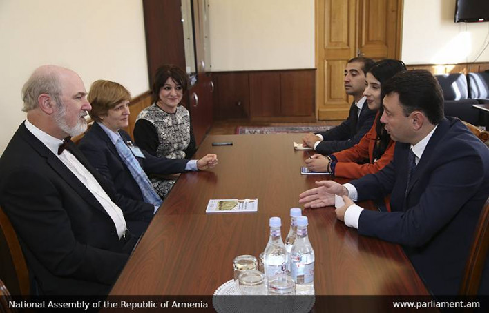 ՀՀ ԱԺ փոխնախագահ Էդուարդ Շարմազանովը հոկտեմբերի 16-ին ընդունել է Միջազգային խորհրդի մարդու իրավունքների հարցերով միջազգային հասարակության նախագահ Թոմաս Շիրմախերին եւ Բոննի համալսարանի պրոֆեսոր Քրիստին Շիրմախերին: Այս մասին հայտնում են ԱԺ-ի մամուլի ծառայությունից: Հանդիպման ընթացքում կողմերն անդրադարձել են ազգային եւ հոգեւոր արժեքների պահպանման կարեւորությանը: Էդուարդ Շարմազանովի խոսքով՝ այսօր քրիստոնեական քաղաքակրթությունը վտանգված է, եւ ինքը տարբեր վեհաժողովներում մշտապես բարձրացնում է քրիստոնեական հուշարձանների պահպանման հարցը: Այս համատեքստում նա անդրադարձել է Նախիջեւանում հայկական հուշարձանների ոչնչացման խնդրին: Անդրադարձ է կատարվել տարածաշրջանային հիմնահարցերին, ԼՂ հակամարտության կարգավորմանը: ԱԺ փոխնախագահը նշել է, որ հիմնական մարտահրավերներն են անվտանգությունը, ԼՂ հիմնահարցի չկարգավորված լինելը, Ադրբեջանի ռազմատենչ հռետորաբանությունը եւ Թուրքիայի կողմից Հայաստանի շրջափակումը: Էդուարդ Շարմազանովի խոսքով՝ Ադրբեջանի ղեկավարության՝ ԼՂ հակամարտությունը մահմեդականների եւ քրիստոնյաների միջեւ կրոնական կոնֆլիկտ ներկայացնելու ջանքերը կեղծ են: «ԼՂ հակամարտությունը չունի կրոնական երանգ: Հայաստանն ունի շատ լավ հարաբերություններ մահմեդական մի շարք երկրների հետ, որտեղ հայ ժողովուրդն ունի բարձր կարգավիճակ, պահպանվում են հայկական հուշարձանները: Ադրբեջանի ղեկավարության՝ հակամարտությանը կրոնական երանգ տալու փորձերն անթույլատրելի են»,-նշել է խորհրդարանի նախագահի տեղակալը: