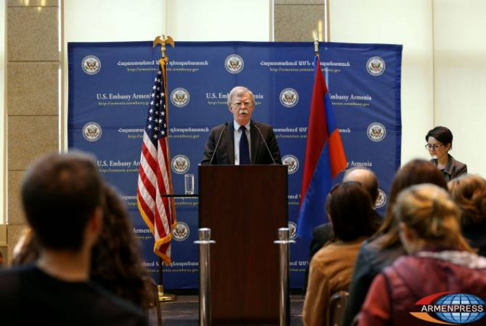 Լեռնային Ղարաբաղի հակամարտության կարգավորումը մնում է Հայաստանի քաղաքական օրակարգի առաջնային կարևորության հարցերից մեկը: Այս մասին հոկտեմբերի 25-ին լրագրողների հետ հանդիպմանը նշեց Հայաստանում գտնվող ԱՄՆ նախագահի Ազգային անվտանգության հարցերով խորհրդական Ջոն Բոլթոնը: «Խնդրի լուծումը բարդ է: Եթե այն հեշտ լիներ, արդեն վաղուց կարգավորված կլիներ: Ես իմ այցով չեմ եկել ազդարարելու ամերիկյան քաղաքականության փոփոխություն, կամ նոր լուծումներ առաջարկելու այս հարցում: Կողմերը պետք է աշխատեն միմյանց հետ, և ի վերջո նրանք պետք է կարողանան գտնել լուծումը»,-«Արմենպրես»-ի փոխանցմամբ՝ նշեց Բոլթոնը՝ մեջբերելով մեկ այլ երկարատև հակամարտության հետ կապված իր նախկին վերադասներից՝ պետքարտուղար Ջիմ Բեյքերի խոսքերը. «Երևի ոչ ոք ավելի շատ խաղաղություն չի ուզում, քան իրենք՝ կողմերը»: