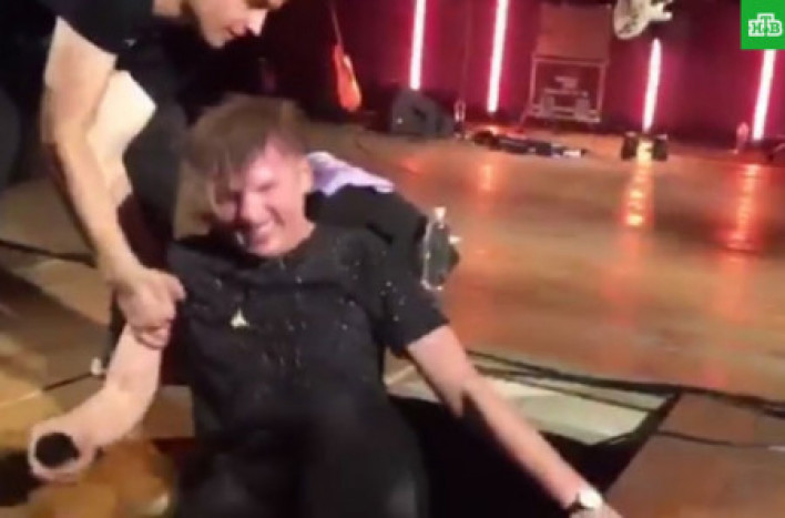 Հրապարակված տեսանյութում երևում է, թե ինչպես է երգիչն ակտիվ շարժումներից և ցատկոտելուց հետո ընկնում բեմի վրա առաջացած փոսը, որից դուրս գալ վերջինիս օգնել են գործընկերները: