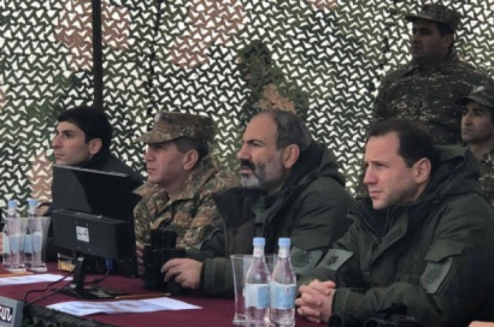 Այսօր ՀՀ վարչապետի պաշտոնակատար Նիկոլ Փաշինյանը ՀՀ պաշտպանության նախարարի պաշտոնակատար Դավիթ Տոնոյանի հետ հետևել են ՀՀ ԶՈւ ԲԿ-ներից մեկում անցկացվող մարտավարական հարձակողական զորավարժություններին։ Այս մասին ֆեյսբուքյան իր էջում գրել է ՀՀ պաշտպանության նախարարի մամուլի քարտուղար Արծրուն Հովհաննիսյանը։ «Մասնավորապես զորքերը բարդ աշխարհագրական և եղանակային պայմաններում գրոհող խմբերով իրականացնում էին նոր բնագծերի գրավման գործողություններ։ Գրոհող խմբերը կիրառում էին նոր մարտավարություն և հատուկ տեխնիկական միջոցներ»,– գրել է Արծրուն Հովհաննիսյանը։