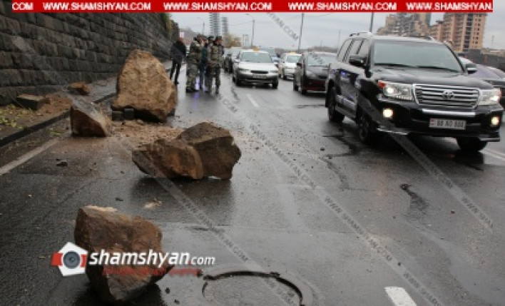 Այսօր՝ նոյեմբերի 30-ին, արտակարգ դեպք է տեղի ունեցել Երևանում : Ժամը 14 00-ի սահմաններում Երևանի Կոնյակի գործարանի հարևանությամբ մի քանի հսկայական քարեր անձրևաջրերի պատճառով գլորվել և ընկել են գլխավոր ճանապարահի վրա: Ինչպես տեղից հայտնում է ֆոտոլրագրող Գագիկ Շամշյանը, բարեբախտաբար, զոհեր և վիրավորներ չկան և քարերի փլուզման ժամանակ ավտոմեքենաներ չեն անցել, հակառակ դեպքում հնարավոր է այլ հետևանքներ առաջանային: Ֆոտոլրագրողը հայտնում է, որ միայն օպերատիվ են գործել Արտակարգ իրավիճակների նախարարության փրկարար ծառայության թիվ 1 հրշեջ-փրկարարական ջոկատը և Երևանի ճանապարհային ոստիկանության ծառայողները, ովքեր չսպասելով Երևանի քաղաքապետարանի ու կենտրոն վարչական շրջանի պաշտոնյաների ժամանումը, իրենց ուժերով նախ վտանգավոր քարերը գլորեցին ցած, որից հետո երթևեկելի գոտուց մասամբ հեռացրեցին: Մնում է Երևանի քաղաքապետարանի, Կենտրոն վարչական շրջանի պատասխանատուները սրտացավ մոտենան խնդրին ու Կոնյակի գործարանի պատասխանատուների հետ խնդիրը կարճ ժամանակում վերացնեն, հակառակ դեպքում կա վտանգ, որ տեղի կունենա քարաթափում: