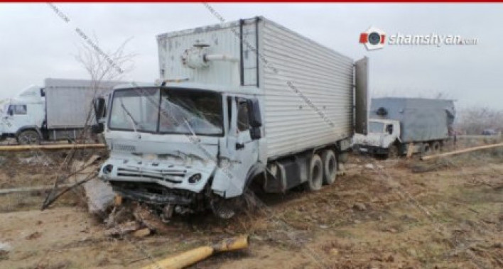 Արարատի մարզում 2 Կամազ բախվել են իրար, ապա հարվածել գազատար խողովակին։ Ինչպես տեղեկացնում է Shamshyan.com.ը` երեկ՝ դեկտեմբերի 8-ին, ժամը 23:40-ի սահմաններում Գորիս քաղաքի բնակիչ, 31-ամյա Սաշիկ Սարգսյանը իր վարած Կամազ 5320 մակնիշի 52 ՏԼ 472 համարանիշի ավտոմեքենայով Երևան-Մեղրի ավտոճանապարհի 52-րդ կմ հատվածում՝ Արմաշ գյուղի վարչական տարածքում, բախվել է Գորիս քաղաքի բնակիչ, 55-ամյա Գագիկ Բեգլարյանի վարած Կամազ մակնիշի 35 MD 383 համարանիշի ավտոմեքենային: