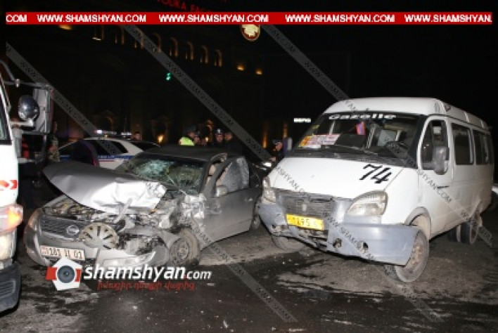 Խոշոր ավտովթար Երևանում. «Մետրոպոլ» հյուրանոցի դիմաց բախվել են ոստիկանական Nissan-ն ու թիվ 74 երթուղին սպասարկող «Գազելը». կա 7 վիրավոր