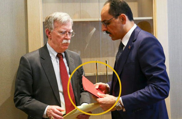 Թուրքիայի նախագահը հրաժարվել է հանդիպել ԱՄՆ նախագահի ազգային անվտանգության հարցերով խորհրդական Ջոն Բոլթոնի հետ: Էրդողանը հայտնել էր, որ ինքը ծանր աշխատանքային գրաֆիկ ունի և Բոլթոնի հետ իր մամուլի խոսնակ Իբրահիմ Քալընը կհանդիպի:Այս մասին հայտնում է ermenihaber.am-ը: Իբրահիմ Քալընը լրագրողների հետ հարցազրույցի ընթացքում մի քանի հայտարարություն է արել Ջոն Բոլթոնի հետ հանդիպումից հետո: Քալընի փոխանցմամբ` Թուրքիան երկու կարևոր փաստաթուղթ է հանձնել է Բոլթոնին. «Ես երկու կարմիր փաստաթուղթ տվեցի Բոլթոնին, որից մեկում մատնանշել ենք մեր քուրդ եղբայրների նկատմամբ իրենց քաղաքականությունը, իսկ մյուսում Սիրիայում քրդական «Ժողովրդավարական միություն կուսակցության» (ԺՄԿ-PYD) և «Ժողովրդական ինքնապաշտպանական ջոկատների» (ԺԻՋ-YPG) գործած հանցանքները»: Մամուլի խոսնակը ևս մեկ անգամ շեշտել է, որ սիրիական սահմանը պետք է մաքրվի ահաբեկչական խմբավորումներից: Հիշեցնենք, որ Բոլթոնը նախորդ շաբաթ Իսրայելում հանդես է եկել Սիրիայում գտնվող քրդական «Ժողովրդական ինքնապաշտպանական ջոկատներին» պաշտպանող հայտարարություններով (ԺԻՋ-YPG), ինչը բողոքի ալիք էր բարձրացրել Անկարայում: