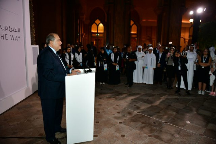 Պաշտոնական այցով Արաբական Միացյալ Էմիրություններում գտնվող Հայաստանի Հանրապետության նախագահ Արմեն Սարգսյանը մայրաքաղաք Աբու Դաբիում մասնակցել է միջազգային խոշոր՝ «Աբու Դաբի կայունության շաբաթ» համաժողովի մասնակից պատվիրակությունների ղեկավարների պատվին տրված ընդունելությանը և հանդես եկել ելույթով։ Շնորհակալություն հայտնելով Արաբական Միացյալ Էմիրությունների ղեկավարությանն ու կառավարությանը հրավերի և համաժողովին մասնակցելու հնարավորության համար՝ Հանրապետության նախագահը մասնավորապես ասել է. «Մենք բոլորս գիտակցում ենք, որ ապրում ենք 21-րդ դարում, մի դար, որը շատ յուրահատուկ է, որտեղ աշխարհը փոխկապակցված է, որտեղ ամեն բան տեղի է ունենում լույսի արագությամբ։ Սա բացարձակ ուրիշ աշխարհ է։ Երկու-երեք բանի մասին ցանկանում եմ կարճ խոսել։ Առաջինը՝ գլոբալիզացիան։ Կան քննարկումներ, թե գլոբալիզացիան այսօր կանգ է առել։ Ես բացարձակապես համաձայն չեմ դրա հետ։ Գլոբալիզացիան այլևս մակրոգործընթաց չէ, այն միկրոգործընթաց է։ Աշխարհում մարդիկ, առևտուրը, հարաբերությունները, կապերը, տեղեկությունն այնքան փոխկապակցված են, որ գլոբալիզացիան շարունակվելու և աճելու է շատ ավելի մեծ արագությամբ։ Երկրորդը, մենք խոսում ենք ինդուստրիալ հեղափոխության՝ չորրորդ ինդուստրիալ հեղափոխության մասին։ Այն, ինչ մենք կունենանք, լինելու է սրընթաց կամ հաստատուն հեղափոխություն, քանի որ տեղի է ունենալու և՛ գիտության, և՛ տեխնոլոգիաների, և՛ առևտրի ոլորտներում, կենսաբանության մեջ, ինչպես նաև մեր վարքագծում։ Սրընթաց հեղափոխությունները տեղի են ունենալու նաև մեր ամենօրյա կյանքում։ Դրանք աշխարհում տեղի են ունենում նաև այսօր, որի օրինակը Հայաստանն է։ Շուրջ մեկ տարի առաջ՝ ապրիլի 9-ին, ես դարձա Հայաստանի Հանրապետության նախագահ։ Դրանից օրեր առաջ սկսվել էր հեղափոխություն, սկսվել էր հինգ անձով, այնուհետև նրանք դարձել էին 100, 500, 1000, 5000… Երկու շաբաթվա ընթացքում մենք ունեինք հեղափոխություն, որին մասնակցում էին հարյուր հազարավոր մարդիկ։ Եվ այս ամենը կազմակերպված չէր, այս ամենը քաղաքական ուժը չէր, որ իրականացրեց: Դա «Ֆեյսբուք»-ի հեղափոխություն էր, 21-րդ դարի հեղափոխություն։ Այսինքն, սրընթաց հեղափոխությունները տեղի են ունենալու նաև քաղաքական կյանքում։ Աշխարհը օր օրի դառնում է ավելի ու ավելի ոչ դասական։ Ցանկանում եմ օրինակ բերել քվանտային ֆիզիկայից։ Հարյուր տարի առաջ ֆիզիկոսները հասկանում էին ամեն բան, ինչ տեղի էր ունենում աշխարհում, և կարող էին ամեն բան բացատրել։ Սակայն աստիճանաբար ի հայտ եկան երևույթներ, որոնք նրանք չէին կարող բացատրել, քանի որ դասական մեխանիկայի գաղափարներն այլևս չէին աշխատում, դասական ֆիզիկայի տրամաբանությունը չէր աշխատում։ Եվ այս ամենը շարունակվեց այնքան, մինչև հսկաներից մեկը` Ալբերտ Այնշտայնը, ստեղծեց մի բան, որն առնչվում էր տարրական մասնիկների վարքագծին, ինչը բացարձակապես դասական չէր։ Դասական ֆիզիկայում, որպեսզի մասնիկներն Ա կետից գնային Բ կետ, պետք է անցնեին հստակ ճանապարհով։ Մինչդեռ քվանտային ֆիզիկայում կամ փոքր մասնիկների ֆիզիկայում այդ մասնիկները հավանականության տեսությամբ կարող էին լինել ցանկացած կետում։ Այսինքն, սա բնական աշխարհը դիտարկելու բացարձակ տարբերվող տեսակ է։ 21-րդ դարում մենք մուտք ենք գործում համաշխարհային ռիսկերի, ինչպես նաև քաղաքականության քվանտային վարքագծի ժամանակաշրջան։ Սոցիալական, քաղաքական իրադարձությունները 21-րդ դարում բացարձակապես տարբերվող վարքագիծ են ունենալու։ Համաշխարհային ռիսկերի վարքագիծը տեխնոլոգիաների, համաճարակների կամ ահաբեկչության դեպքում ամբողջովին տարբերվելու է 20 -րդ դարի նրանց վարքագծից։ Ռիսկերը, ո