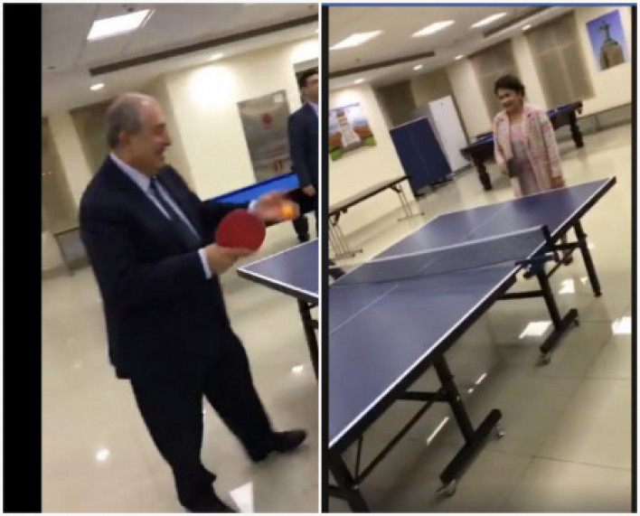 Հետաքրքիր տեսանյութ. Արմեն Սարգսյանը կնոջ հետ պինգ պոնգ է խաղում