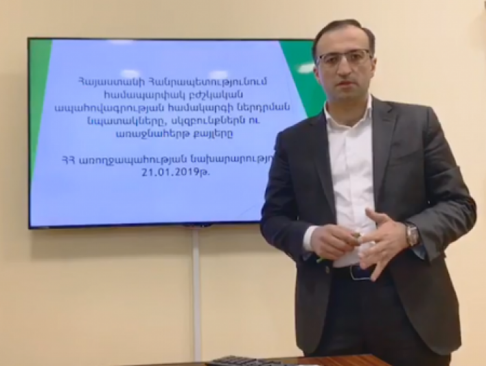 «Հիմա մոտ 115 հազար քաղաքացի ունի սոցիալական փաթեթի բուժօգնության հատվածը: Ապահովագրավճարների հավաքագրումը պետք է լինի առկա մեխանիզմներով: Մենք կարծում ենք, որ իրականացնող կառույցը պետք է լինի մեկ հանրային մարմին: Դա ավելի արդյունավետ է, քան բազմակի մարմիններ ունենալը: Մասնավոր ապահովագրականների դեպքում պետք է շատ ծանր և խիստ ռեգուլյացիաների ենթարկել նրանց»,- ասաց նախարարը: