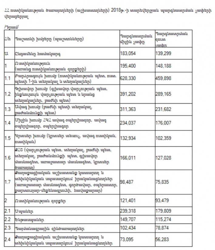 Ոստիկանության պետը, 1-ին տեղակալն ու տեղակալները (նշենք, որ ոստիկանապետն ունի հինգ տեղակալ, այդ թվում նաև առաջին տեղակալը) ստացել են 628 հզր դրամ պարգևավճար (հարկերի գանձումով ՝ 560 հզր դրամ), գլխավոր խումբը՝ վարչության պետերը՝ 391 հզր դրամով, հարկերի գանձումով՝ 289 հզր դրամ, ավագ խումբը պարգևատրվել է 311 հզր դրամով, հարկերի գանձումով՝ 231 հզր դրամ, միջին խումբ ՀԿՀ ավագ օպերլիազորները, ավագ օպերլիազոր, օպերլիազորները պարգևատրվել են 234 հզր դրամով, հարկերի գանձումով՝ 176 հզր դրամ, ոստիկանության զորքերը պարգևատրվել են 121 հզր դրամով, հարկերի գանձումով՝ 93 հզր դրամ, սպաները՝ 239 հազար, զուտ չափը՝ 179 հզր դրամ: