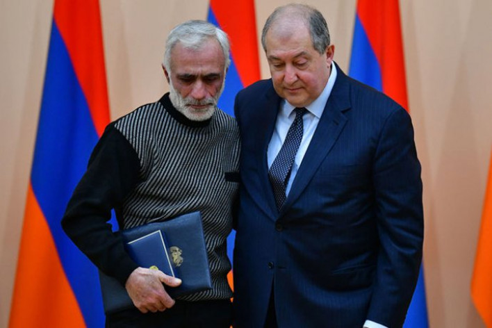 Երեսուներեք շքանշան. տարբեր աստիճանների և տարբեր զորամասերի հենց այդքան զինծառայողների պարգևատրեց Հայաստանի Հանրապետության նախագահ Արմեն Սարգսյանը ՀՀ Բանակի օրվա կապակցությամբ։ Միայն 30 զինվորականները կարողացան անձամբ պարգև ստանալ նախագահի կողմից։ 33–ից 3–ը, որոնք արժանացան Մարտական ծառայության մեդալի, ընկել էին Հայրենիքի համար մարտում։ Մեդալները ստանալու համար եկել էին հերոսների ծնողները, նրանց ծնողները, ում երբեք չենք մոռանա։ Ծնողները բեմ բարձրացան շռնդալից ծափահարությունների ներքո։ Արամ Ճաղարյանի մայրը հպարտ հայացքով նուրբ կին է։ Նա մոտեցավ նախագահին և արցունքն աչքերին ընդունեց մեդալը. հուզմունքը զսպում էր։ «Մենք շնորհակալ ենք ձեզ», – ցածրաձայն ասաց նախագահը, և երկուսի դեմքն էլ այլայլվեց։ Երկուսն էլ քիչ էր մնում հեկեկային բեմի վրա. իրավիճակը փրկեցին ծափահարությունները։ Կինը շրջվեց, որպեսզի հեռանա, բայց նախագահը չթողեց։ Նա նրբորեն գրկեց հերոսի մորը` լուսանկարվելու համար։ Լուսանկարն այդքան ուրախ չստացվեց. խանգարեցին արցունքով լի աչքերը։ Հայկ Քարամյանի հորը մեդալը հանձնելու համար նախագահն իջավ բեմից և օգնեց նրան բարձրանալ աստիճաններով։ Հուզմունքից և հպարտությունից դողալով` ալեհեր տղամարդը մեղմ ժպտաց։ Նախագահը գրկեց նրան, և դահլիճը մի քանի վայրկյան ընկղմվեց լիակատար լռության մեջ։ Տղամարդիկ նայեցին միմյանց. ամեն ինչ հասկանալի էր առանց խոսքերի։ Դահլիճը կրկին թնդաց ծափահարություններից, իսկ հերոսի հայրը փորձեց արագ իջնել բեմից, որպեսզի ոչ ոք չնկատի, թե ինչպես է նա սրբում այտի վրայով գլորվող արցունքը։ Մհեր Հովսեփյանի մայրը չկարողացավ թաքցնել հուզմունքը. նա բեմ բարձրացավ արդեն արցունքոտ աչքերով։ Դառնորեն նայեց պատվո պահակախմբի զինվորին, կամացուկ ինչ–որ բան ասաց։ Հնարավոր է` շնորհավորանք էր։ Ամեն դեպքում զինվորը նկատելի ժպտաց։ Նախագահը նրան էլ ուղեկցեց։ Ամբիոնին մոտենալով՝ նախագահը ջուր խմեց բաժակից. կոկորդում հուզմունք կար կուտակված: Ելույթ ունեցավ պարբերաբար նայելով հերոսների ծնողներին։ Ավելի ուշ Արմեն Սարգսյանն ասաց Sputnik Արմենիայի թղթակցին, որ նրանց հետ խոսել է որպես մարդ, որը պատրաստ է օգնել, մարդ, որը ցավ է ապրում նրանց և նրանց կորուստի համար։ Չնայած այդ ակնթարթների ամբողջ ողբերգականությանը` դահլիճում հպարտության անհավանական մթնոլորտ էր կախված։ Դա երևում էր նաև զինծառայողների դեմքերից, որոնք մեդալներ էին ստացել։ Նրանցից յուրաքանչյուրը բեմ բարձրացավ, վերցրեց պարգևը և, կտրուկ շրջվելով դահլիճի կողմ, լայնորեն ժպտաց։ Մարդիկ կային, որոնց համար այդ մեդալն առաջինը չէր։ Բեմ տանող յուրաքանչյուր քայլն ուղեկցվում էր միմյանց հարվածող մեդալների զրնգոցով։ Առաջին շարքում նստած պաշտպանության նախարար Դավիթ Տոնոյանն ամեն անգամ հպարտորեն ժպտում էր և գոհունակությամբ նայում իր պարգևատրված սաներին։ Հենց ամուսինները նստում էին, զինվորականների տիկնայք իբր ուղղելու նպատակով զննում էին մեդալները։ Ամուսինները մեղմորեն հեռացնում էին նրանց ձեռքերը` քթի տակ ժպտալով։ Ու ես հիշեցի, թե ինչպես միջոցառումից առաջ, երբ դահլիճ մտավ զինծառայողների խումբը, տղաները միմյանց հարցրին` որտե՞ղ են մեր դիրքերը։ Պարզ էր, որ այդ տղաները դիրքեր զիջել չգիտեն։ armeniasputnik.am