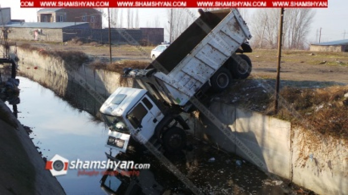 Այսօր՝ հունվարի 30-ին, արտակարգ դեպք է տեղի ունեցել Արարատի մարզում։ Ճանապարհային ոստիկանության 2-րդ սպայական գումարտակի 1-ին վաշտի հրամանատար Վահան Էվինյանը տեղեկություն է ստացել, որ Խարբերդի 1-ին փողոցում գտնվող Ստալինյան ջրանցքում բեռնատար է մասամբ կախվել։ Ինչպես դեպքի վայրից հայտնում է ֆոտոլրագրող Գագիկ Շամշյանը, դեպքի վայր են ժամանել ՃՈ 2-րդ սպայական գումարտակի 1-ին վաշտի 2-րդ դասակի տեսուչներ Նշան Հակոբյանը և Գերասիմ Գևորգյանը, ովքեր նշված ջրանցքում հայտնաբերել են MAN մակնիշի 877 ՏՍ 51 համարանիշի ավտոմեքենան։ Նույն վաշտի ավագ տեսուչ Կարապետ Հարությունյանը պարզել է, որ վթարի հետևանքով զոհեր և վիրավորներ չկան։ Ոստիկանությունը պարզում է վարորդի ինքնությունը։ Գ. Շամշյանի տեղեկություններով՝ նշված ավտոմեքենան հաշվառված է Սյունիքի մարզում գրանցված «Շահար» ՍՊԸ-ի հաշվեկշռում։