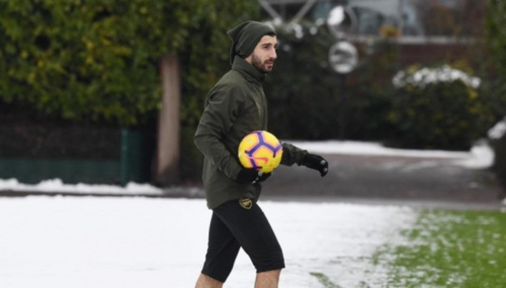 Լոնդոնի «Արսենալ»-ի ֆուտբոլիստները պատրաստվում են Անգլիայի Պրեմիեր լիգայի 25-րդ տուրի՝ «Մանչեսթր Սիթի»-ի դեմ խաղին: Հայաստանի ազգային հավաքականի և թիմի կիսապաշտպան Հենրիխ Մխիթարյանը մասնակցել է մարզմանը: