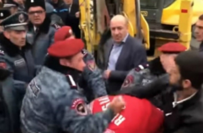 Ինչպես է ոստիկանը արմունկով ու ծնկով հարվածում ցուցարարին (տեսանյութ)