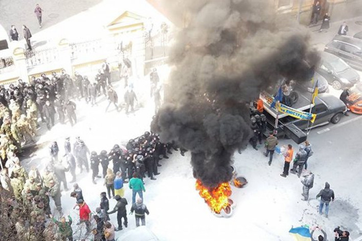 Ավտոմայդանն անիվներ է այրել Պորոշենկոյի վարչակազմի շենքի մոտ. լուսանկարներ