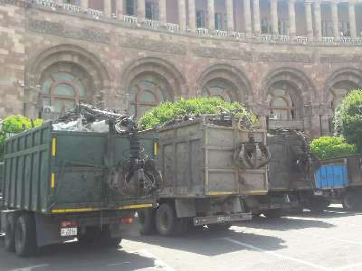 Մետաղական աղբով լի բեռնատարները կառավարության դիմաց են. Բողոքի ակցիա