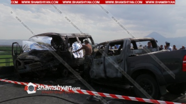 Ինչպես դեպքի վայրից հայտնում է ֆոտոլրագրող Գագիկ Շամշյանը, բախման հետևանքով «Գազել»-ում հրդեհ է բռնկվել, և այն վերածվել է մոխրակույտի։ Դեպքի վայր են ժամանել Արտակարգ իրավիճակների նախարարության փրկարար ծառայության Արարատի հրշեջ փրկարար ջոկատը 1 մարտական հաշվարկով, ովքեր քաղաքացիների օգնությամբ մարել են «Գազել»-ում առաջացած հրդեհը, և այնտեղ հայտնաբերել են այս պահի դրությամբ 5 մոխրացած դի։ Դեպքի վայր են ժամանել Ճանապարհային ոստիկանության 2-րդ սպայական գումարտակի 1-ին վաշտի 2-րդ դասակի ծառայողները վաշտի հրամանատար Վահան Էվինյանի, դասակի հրամանատար Կարապետ Հարությունյանի գլխավորությամբ։