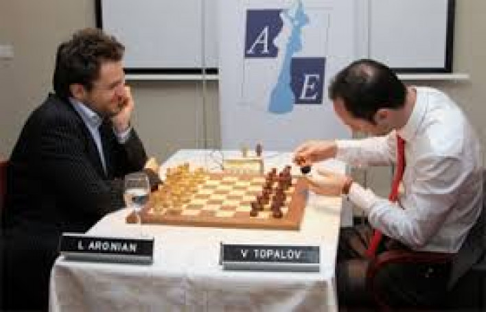 Առաջին տուրում Արոնյանի մրցակիցը բուլղարացի Վեսելին Տոպալովի հետ: Հայ շախմատիստը խաղում էր սպիտակ խաղաքարերով: Պարտիան ավարտվեց 58-րդ քայլում: