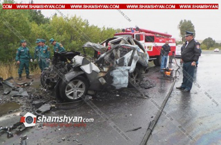 Բախման հետեւանքով ավտոմեքենայում հրդեհ է բռնկվել, եւ BMW X5-ն ամբողջովին վերածվել է մոխրակույտի։