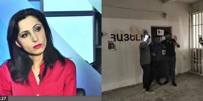 Այսօր ԱԱԾ-ի դիմաց «Առողջ Հանրություն» ՀԿ նախագահ Մարինա Խաչատրյանը հանդիպել է լրագրողների հետ, անդրադարձել իր նկատմամբ, ընդդիմադիր հայացքներ ունեցող մարդկանց նկատմամբ ճնշմանը, ինչպես «Հայելի» ակումբի դեմ ոտնձգությանը: Հիշեցնենք, որ հոկտեմբերի 5-ին մի խումբ երիտասարդներ գնացել են «Հայելի» մամուլի ակումբ և նույն տարածքում գտնվող «Hayeli.am» կայքի խմբագրություն, ձվեր են նետել և «դատապարտող» պաստառներ փակցրել լրատվամիջոցի պատի ու փակ մուտքի դռան վրա։ Նրանք հայտարարել են, որ եթե խմբագրությունը բաց լիներ, նույնը կանեին ներսում։ Առավել մանրամասն՝ տեսանյութում.