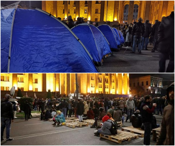 Թբիլիսիում հավաքված ցուցարարները, սակայն Իվանիշվիլիի հայտարարություններին այլևս չեն հավատում: Բողոքի ակցիան Ռուսթավելիի պողոտայում մեծ թափով շարունակվեց: Ցուցարարները վրաններ տեղադրեցին խորհրդարանի շենքի մոտ, գիշերը մնացին այնտեղ։ Ընդդիմությունն ու քաղաքացիական ակտիվիստները միավորվելու ճանապարհին են։