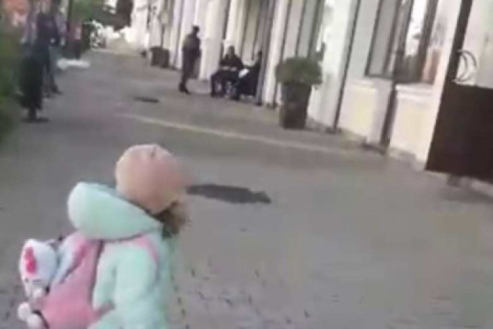 Տեսանյութը նկարահանել է երեխայի մայրը, ով ուղղակի ֆիքսել է իր փոքրիկի զբոսանքը: Եվ հանկարծ հրաձգություն է սկսվել և երեխան վազել է դեպի մայրը: